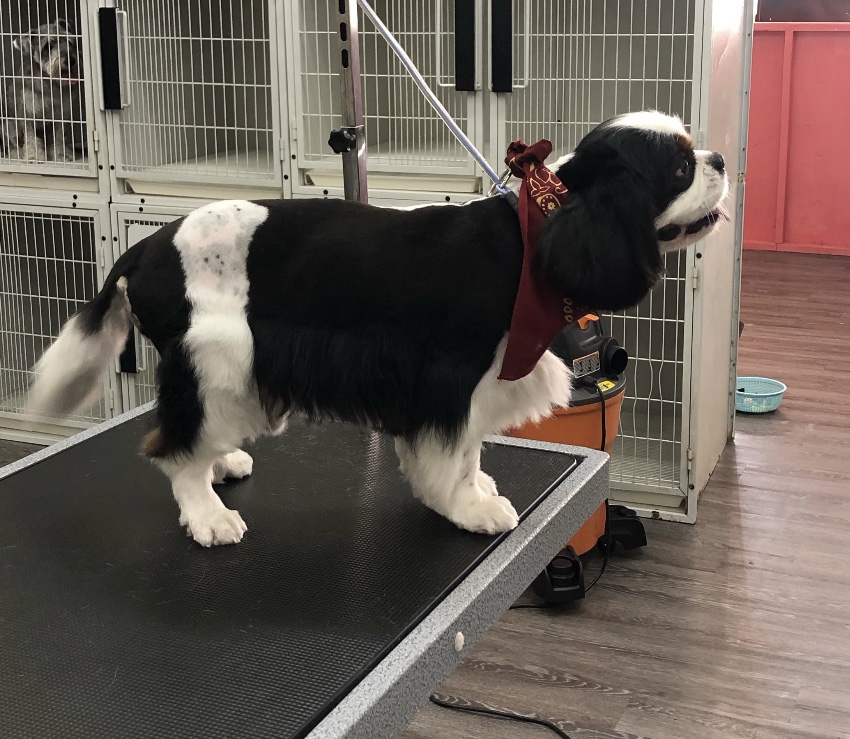 A full groom for dogs and cats that don’t need a haircut includes a bath with a light massage while they’re getting soaped up in the tub, ear cleaning, nail trimming, hand drying, and brushing. Prices are all inclusive. We offer specialty shampoos for certain skin conditions including oatmeal shampoos and lavender chamomile.